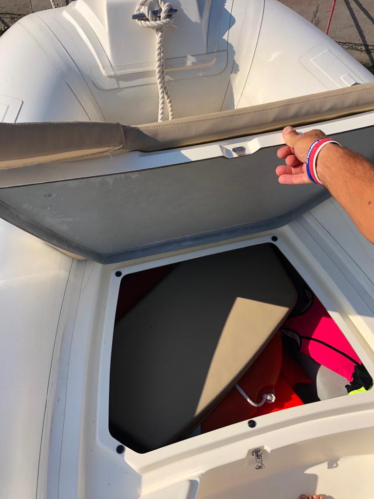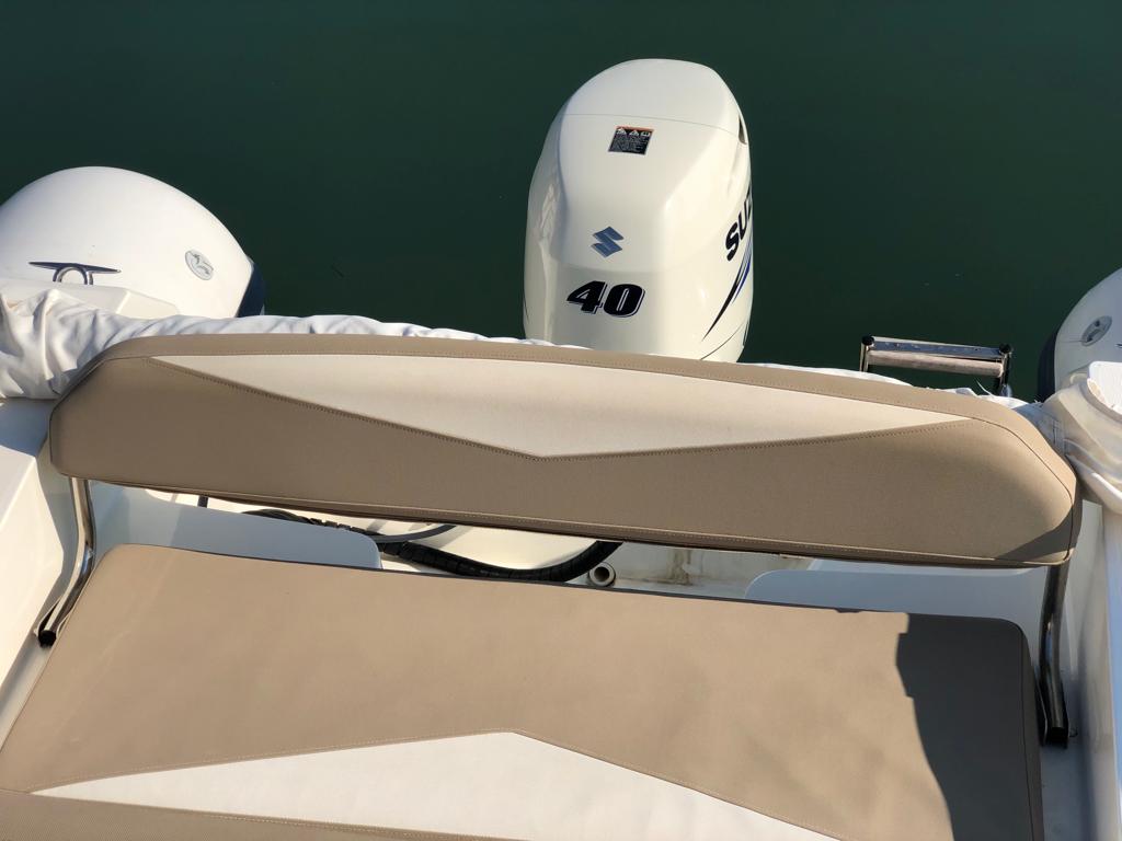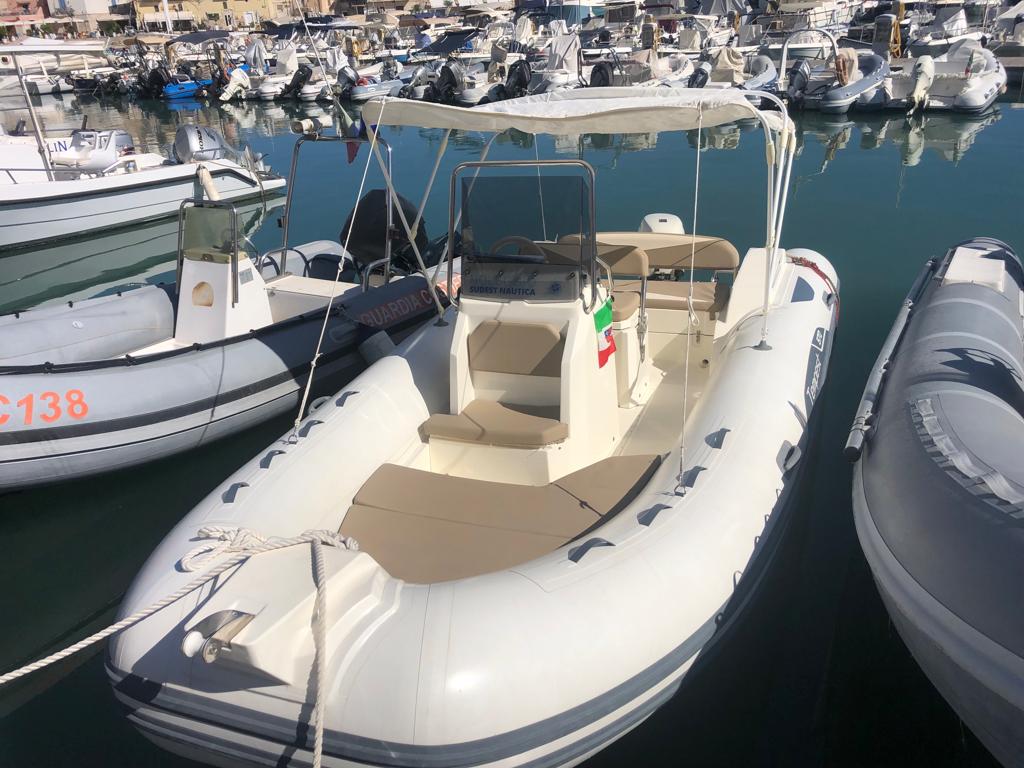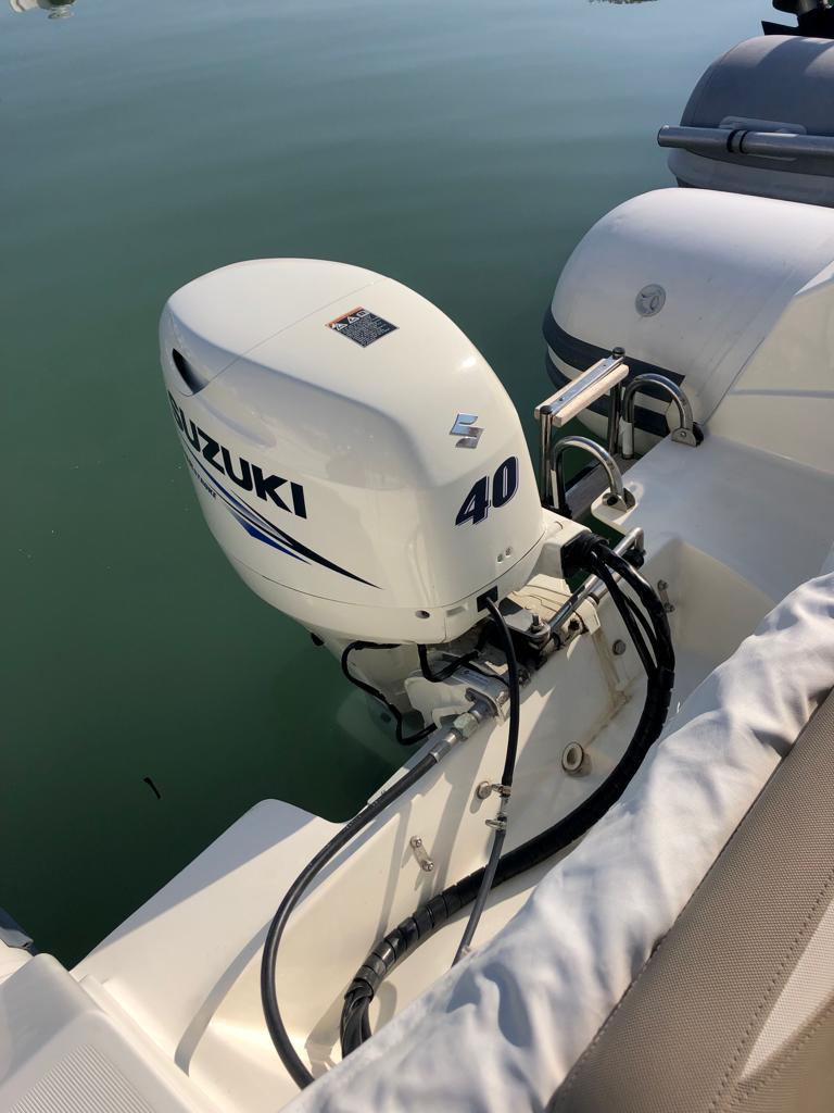 Noleggio con o senza skipper. Gommone Tempest 5,70 mt. con motore Suzuki 40 cv. da condurre senza obbligo di patente nautica. Imbarcazione dotata di tendalino, cuscineria, prendisole a prua, scaletta per discesa a mare, maschere e pinne per due persone, radio Bluetooth e tutti i dispositivi di sicurezza come da indicazioni di legge. Massimo 8 persone trasportabili. Comodo per uscite in gruppo o familiare per visitare la costa della Puglia dal mare o per passare una giornata lontano dagli affollati lidi balneari. Partenza dal porto di Bisceglie Approdi nella città di Bisceglie a nord di Bari. Il porto si trova sotto la città vecchia ed è circondato di ristoranti di ogni tipo che ti verranno da noi consigliati se lo vorrai. In navigazione verso sud consigliata la visita della grotta di Ripalta visibile solo via mare con una sosta per fare snorkeling; la città vecchia di Molfetta affascinante vista dal mare con il suo storico torrione di avvistamento; Giovinazzo con il suo bel lungomare ed il piccolo ma caratteristico porticciolo dove sono stati girati video pubblicitari di importanti brand come Algida. Altri luoghi da vedere verso nord sono la famosa cattedrale di Trani ed il trabucco, antica costruzione sulla costa che veniva usata in passato per pescare; l'intera costa è ideale per fare un bagno. Carburante escluso, da pagare in base al consumo in porto.