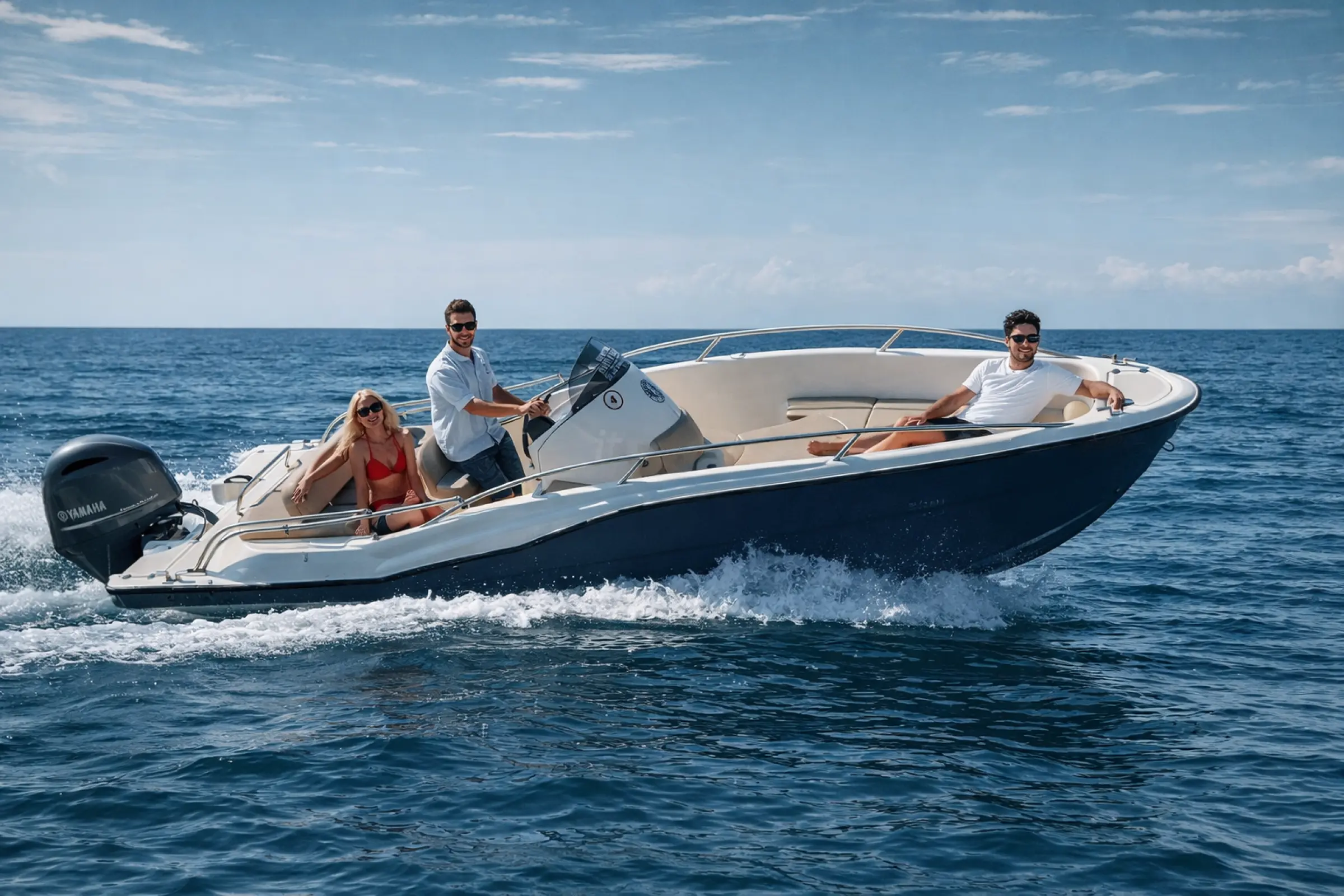 Noleggio con skipper. Barca in vetroresina cantiere Clear Marine modello Libra open 650, lunghezza mt. 6,50 con motore fuoribordo Tahatsu mfs 115 cv. da condurre esclusivamente con patente nautica o in presenza di un nostro skipper. La barca è molto accessoriata in modo da offrire il massimo del confort. Dotata di Tendalino, Cuscineria, Prendisole a prua e a poppa, Scaletta a mare, Radio bluetooth, Eco Garmin 5 pollici, Ecoscandaglio, Navigatore, GPS, Luci di via, Ancora con verricello elettrico, kit doccino con serbatoio acqua 50 litri, Maschere e Pinne per snorkeling, Box per bevande (su richiesta) e tutti i dispositivi di sicurezza come da indicazioni di legge. Massimo 12 persone trasportabili. Comodo per uscite in gruppo o familiare per visitare la costa della Puglia dal mare o per passare una giornata lontano dagli affollati lidi balneari. Ideale anche per eventi quali compleanni o aperitivi al tramonto. Partenza dal porto di Bisceglie Approdi nella città di Bisceglie a nord di Bari. Il porto si trova sotto la città vecchia ed è circondato di ristoranti di ogni tipo che ti verranno da noi consigliati se lo vorrai. In navigazione verso sud consigliata la visita della grotta di Ripalta visibile solo via mare con una sosta per fare snorkeling; la città vecchia di Molfetta affascinante vista dal mare con il suo storico torrione di avvistamento; Giovinazzo con il suo bel lungomare ed il piccolo ma caratteristico porticciolo dove sono stati girati video pubblicitari di importanti brand come Algida. Altri luoghi da vedere verso nord sono la famosa cattedrale di Trani ed il trabucco, antica costruzione sulla costa che veniva usata in passato per pescare; l'intera costa è ideale per fare un bagno. Lo skipper racconterà storia e curiosità dei luoghi. Carburante escluso, da pagare al rientro in porto in base al consumo. Tariffa skipper non inclusa nella tariffa noleggio ed è da pagare prima dell'imbarco