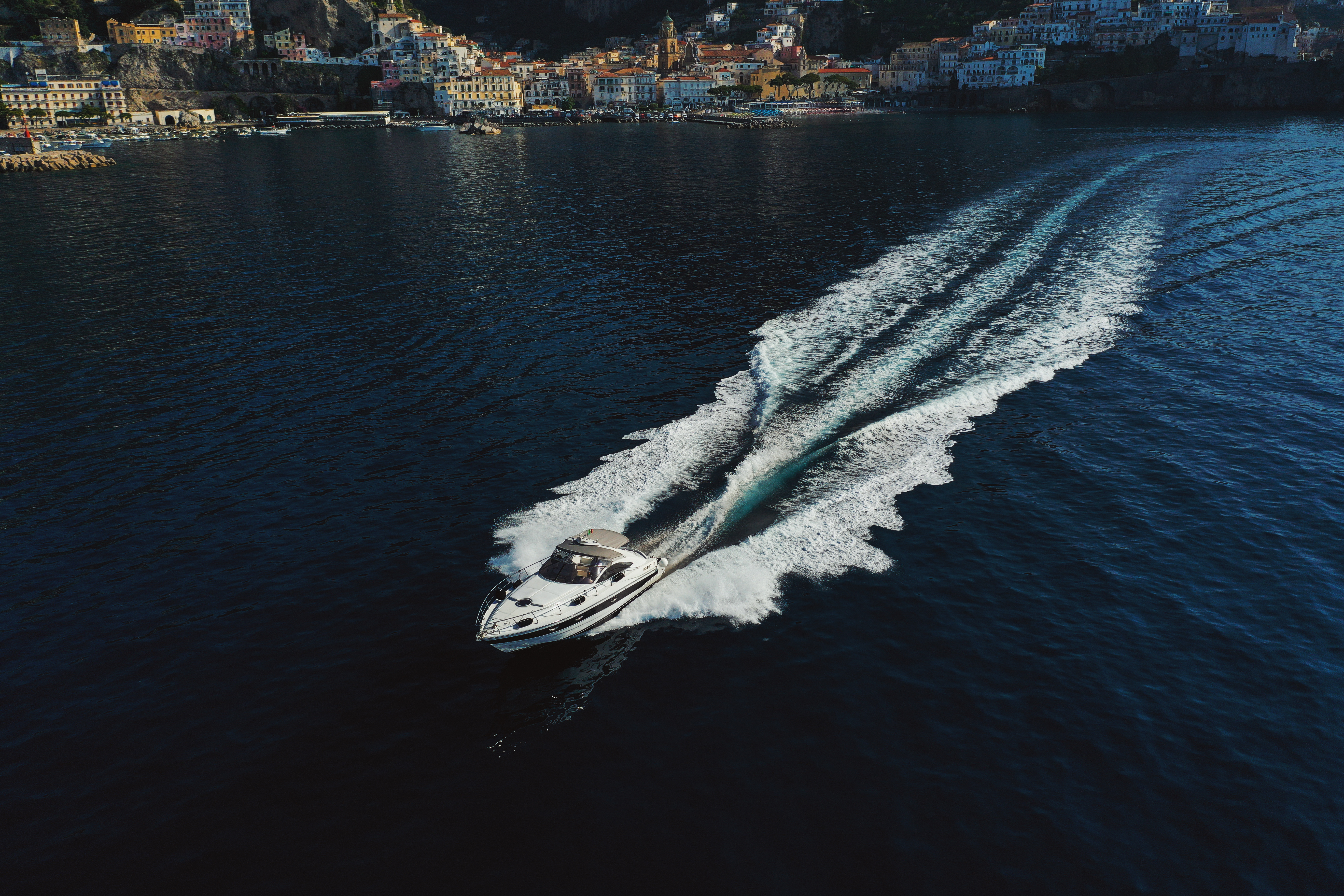 Il motoscafo Pershing 37 è l’imbarcazione ideale per trascorrere un giorno esclusivo in famiglia con bambini, tra amici, o per una coppia in luna di miele. Il tour qui offerto è privato e si svolge lungo la Costiera Amalfitana. Ha una durata di circa 6/7h, durante il quale si ha la possibilità di ammirare dal mare i borghi costieri quali Amalfi, Maiori, Minori, Conca dei Marini, Furore, Praiano e Positano, i suoi numerosi limoneti che ricoprono la costa, le sue torri storiche del XIII secolo, nuotare in grotte naturali, fermarsi per un tuffo nelle splendide acque turchesi, e godersi una giornata in barca in pieno relax!!! Nel prezzo è incluso: iva, skipper, carburante, teli mare, bevande analcoliche, prosecco e snack. Non incluso nel prezzo: pranzo in uno dei ristoranti tipici sul mare. NB: Siamo in grado di offrire ulteriori tour personalizzati, come il tour di Capri, il tour al tramonto e trasferimenti.. per eventuali richieste personalizzate, non esitare a contattarci!! Saremo lieti di fornire durante la conversazione i prezzi dei servizi personalizzati richiesti..