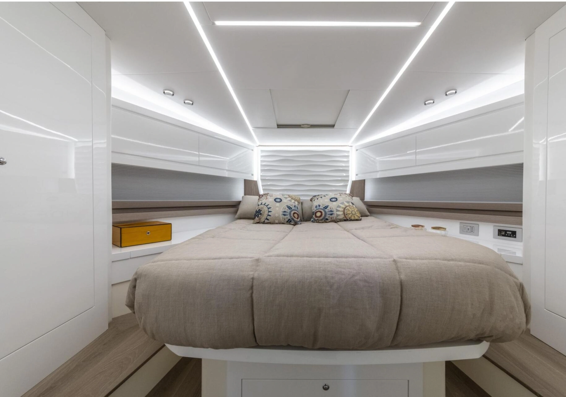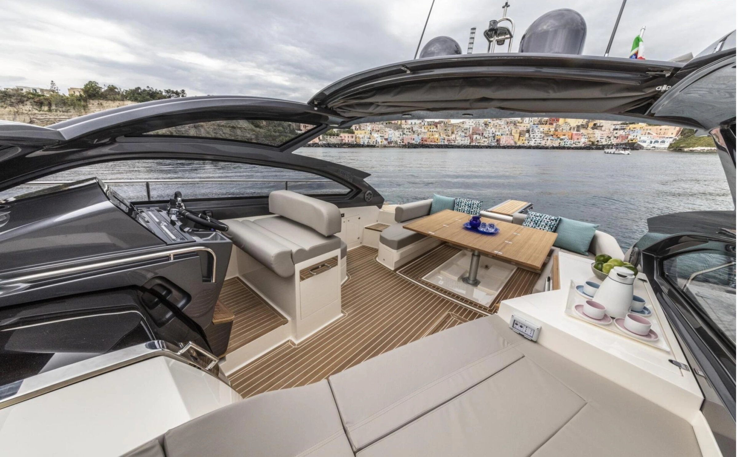 🚤 Fiart 47 – Lusso, Potenza e Stile Mediterraneo La Fiart 47 è un elegante yacht open di lusso costruito dal cantiere Fiart Mare, uno dei più rinomati produttori italiani, conosciuto per l’artigianalità e il design senza tempo. Con i suoi ampi spazi, interni raffinati e prestazioni eccellenti, è la barca perfetta per escursioni giornaliere o mini crociere tra la Costiera Amalfitana, Capri, Ischia e Procida. ⚙️ Scheda Tecnica Cantiere: Fiart Mare (Italia) Modello: Fiart 47 Lunghezza fuori tutto: 14,65 m Larghezza: 4,41 m Motorizzazione: 2 x Volvo Penta IPS 600 (435 CV ciascuno) Velocità di crociera: 26–28 nodi Velocità massima: 35 nodi Capacità passeggeri: fino a 12 persone (navigazione diurna) Posti letto: 6 (3 cabine – armatoriale, VIP e doppia) Equipaggio: 1–2 persone (skipper e hostess su richiesta) 🛋️ Comfort e Attrezzature di Bordo Ampio pozzetto esterno con tavolo da pranzo e sedute avvolgenti Zona prendisole di poppa e solarium di prua per il massimo relax Plancetta bagno con scala e doccia esterna con acqua calda Cucina attrezzata con piano cottura, lavello, frigorifero e ampi spazi di stivaggio Tre cabine: armatoriale, VIP e doppia ospiti Due bagni con box doccia separato Aria condizionata e generatore Impianto stereo Bluetooth, Wi-Fi, TV, prese USB Tendalino parasole / bimini top, plancetta idraulica, luci subacquee 🧭 Dotazioni di Sicurezza Conforme alle normative italiane ed europee per la navigazione costiera e d’altura: Zattera autogonfiabile, giubbotti di salvataggio, estintori, radio VHF, GPS e plotter cartografico Salpa ancora elettrico, elica di prua e attrezzatura completa per l’ormeggio 🌅 Zona di Navigazione – Sorrento, Capri e la Costiera Amalfitana Partendo dal porto di Sorrento, la Fiart 47 offre un’esperienza di navigazione esclusiva tra le perle del Golfo di Napoli — un perfetto connubio di paesaggi mozzafiato, acque cristalline e autentico fascino mediterraneo. Capri L’isola dell’eleganza e dell’esclusività. Da non perdere: Grotta Azzurra, Faraglioni, Marina Piccola, Faro di Punta Carena. Soste consigliate: La Fontelina o Da Paolino, ristoranti iconici dell’isola. Esperienze: bagno nelle baie nascoste, snorkeling o aperitivo al tramonto davanti ai Faraglioni. Costiera Amalfitana Un tratto di costa patrimonio UNESCO, celebre per la sua bellezza naturale. Borghi imperdibili: Positano, Praiano, Amalfi, Ravello. Insenature suggestive: Baia di Nerano e Conca del Sogno – ideali per un bagno o una cena in rada. Ristoranti consigliati: Lo Scoglio, La Conca del Sogno, Chez Black. Ischia e Procida Due isole dal fascino autentico, ricche di storia e natura. Ischia: visita Sant’Angelo, le terme di Sorgeto e il Castello Aragonese. Procida: sosta a Marina di Corricella, borgo colorato e pittoresco, perfetto per un pranzo a base di pesce fresco. ⚓ Itinerario Consigliato – Escursione Giornaliera da Sorrento Partenza: Marina Piccola di Sorrento Mattina: navigazione verso Capri (circa 45 minuti) – sosta ai Faraglioni e visita alla Grotta Azzurra o alla Grotta Verde Pranzo: a bordo o in ristorante sull’isola Pomeriggio: direzione Baia di Nerano o Positano per bagno e relax Rientro: a Sorrento al tramonto, con aperitivo in pozzetto 💡 Attività Consigliate Tour panoramici privati con soste per il bagno Snorkeling, paddleboard o esperienza con seabob Aperitivi e cene romantiche al tramonto Mini crociere di 2–3 giorni tra Capri, Ischia e la Costiera Amalfitana Transfer di lusso, servizi fotografici o eventi privati a bordo