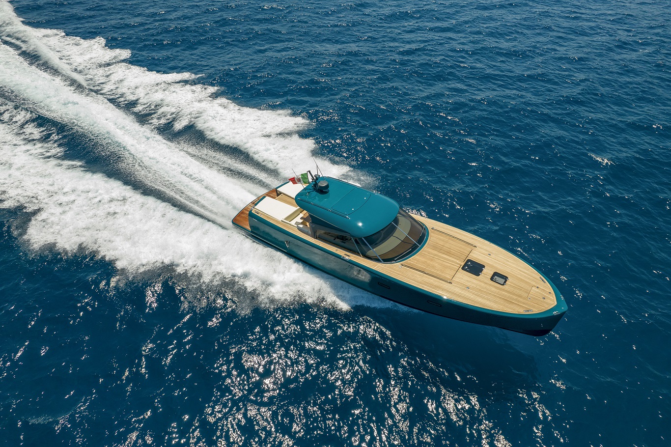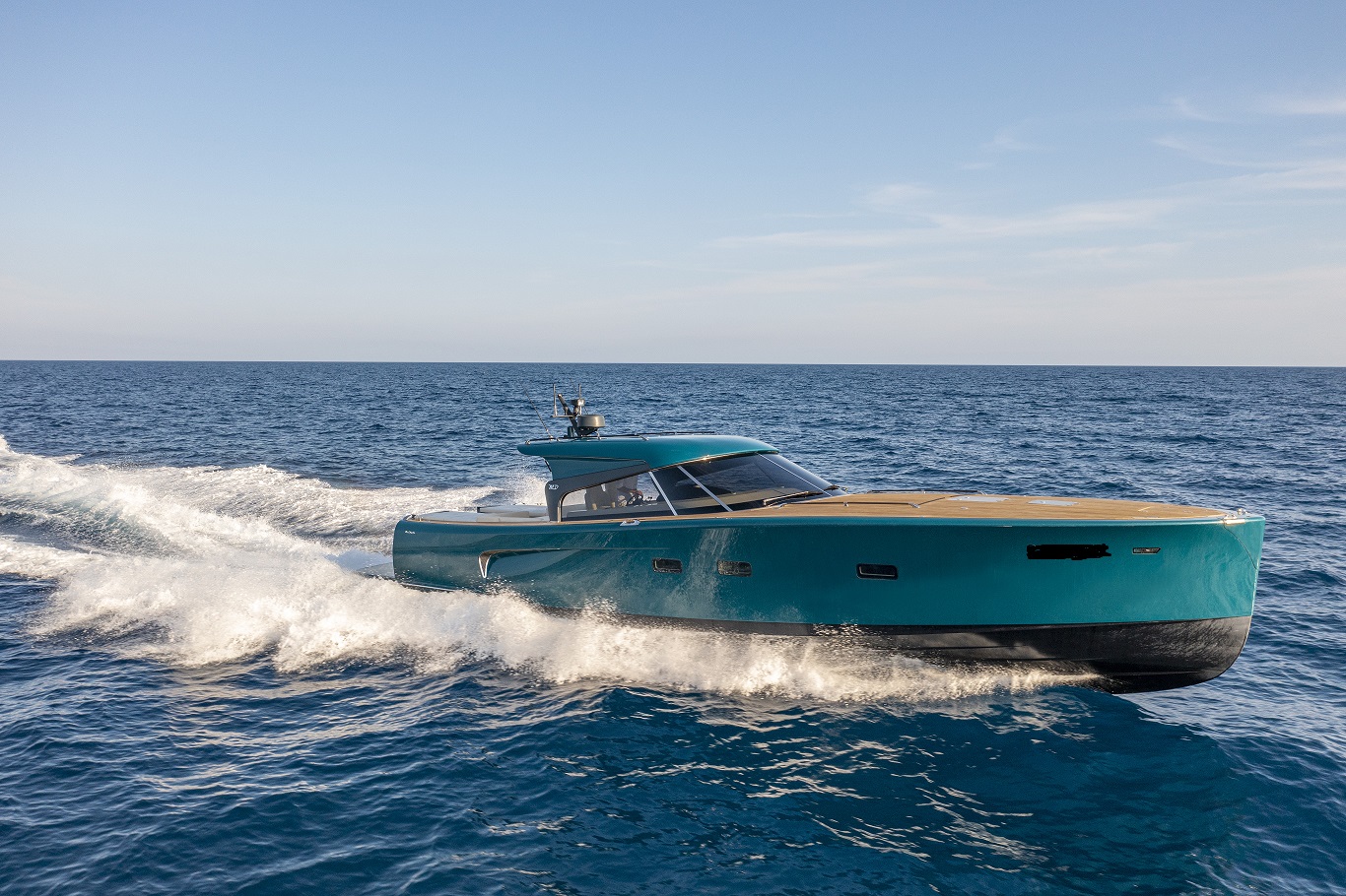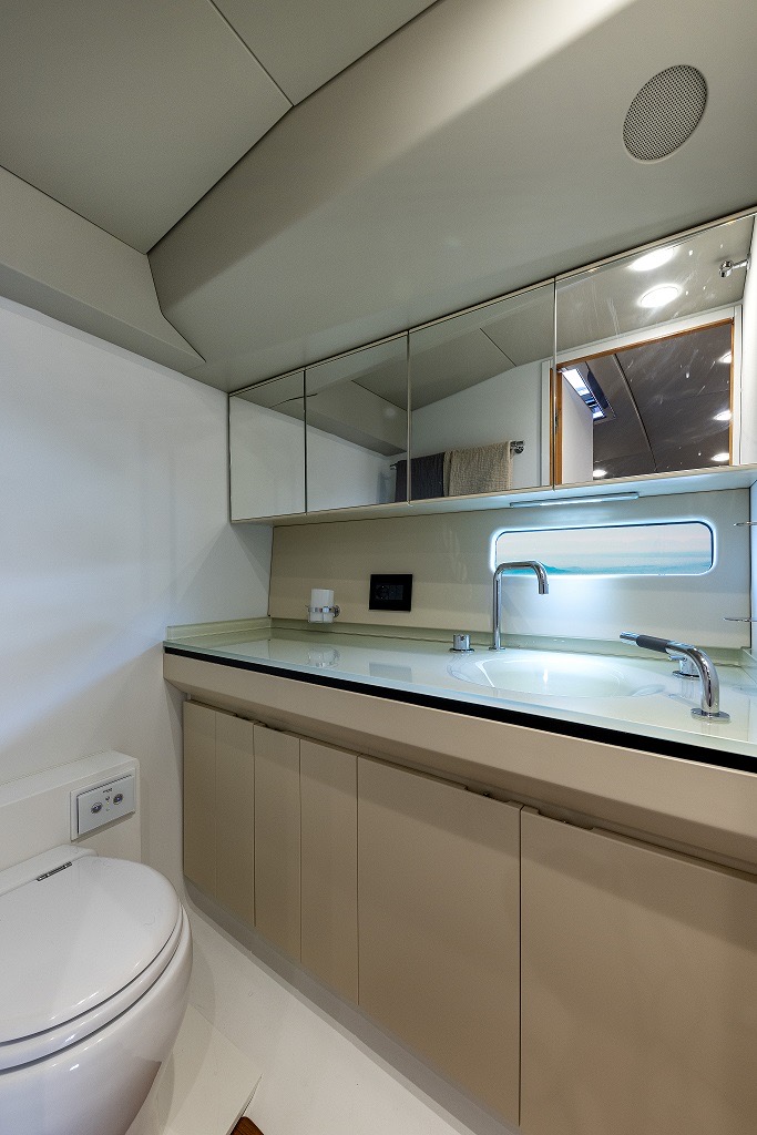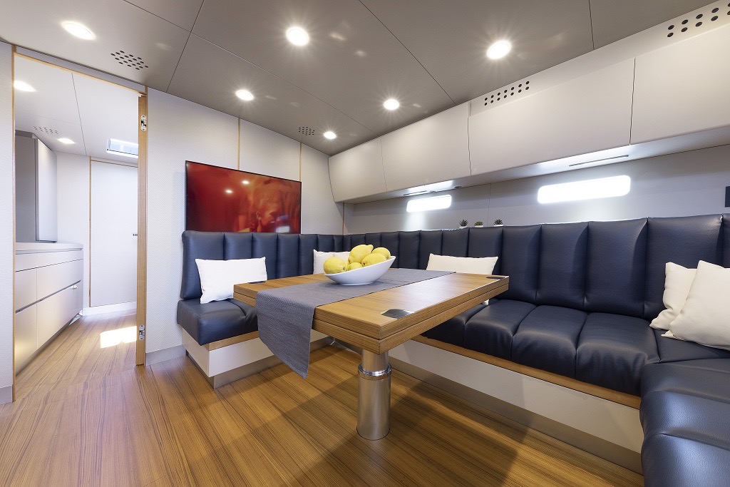 MD51 è un motoryacht che sfrutta al meglio l’esperienza degli esperti della Maxi Dolphin: l’uso di materiali compositi, l’applicazione di tecnologie avanzate e il design dello scafo con un’eccellente efficienza idrodinamica. Il progetto porta la firma di Roberto Starkel. Un mega-tender super moderno di ispirazione retro. La sua forma, basata sullo stile delle barche a motore degli anni ’30, fa da contrasto ai materiali di ultima generazione: l’intera imbarcazione è costruita con la tecnologia Sprint, che le conferisce forza e impareggiabile leggerezza. I macchinari sono dei capolavori della tecnologia: l’MD51 ha due motori 453-HP Volvo Penta IPS 600. IPS (Inboard Performance System) è il nuovo rivoluzionario sistema di propulsione sviluppato dalla Volvo Penta. La posizione delle eliche accresce enormemente l’efficienza del sistema, offrendo più velocità, accelerazione e ottime prestazioni in generale. Inoltre, grazie alla significativa riduzione di consumo di carburante, l’autonomia aumenta notevolmente. La manovrabilità simile a quella dell’automobile permette una perfetta conducibilità anche ad alta velocità, mentre il sistema Volvo Penta favorisce facili attracchi. Il rumore e le vibrazioni prodotte sono ridotte ai minimi livelli e la scarsità dei fumi di scarico contribuiscono al comfort che si trova a bordo. MD 51 è stato concepito ponendo enfasi sull’eco-sostenibilità: la leggerezza, combinata con l’ottimizzazione del design dello scafo, favorisce l’impianto di macchinari con potenza inferiore rispetto agli altri yacht di simili dimensioni. Per questo motivo, con le stesse prestazioni, MD51 è in grado di consumare basse quantità di carburante (all’incirca 100 l/h a velocità di crociera), avere una gamma di carburante più estesa (340 M a velocità di crociera) ed emissioni di CO2 ridotte. Per questo yacht in particolare la Maxi Dolphin ha sviluppato le prime applicazioni per l’I-Pad Apple in grado di controllare i device elettrici ed elettronici a bordo di MD 51, così come l’impianto audio. L’I-Pad si trasforma in un telecomando che, tramite Wifi, permette la gestione delle funzioni dell’imbarcazione (ad eccezione dei motori). L’uso della tecnologia CAN-bus ha contribuito alla riduzione del peso mediante l’eliminazione dei larghi cavi.