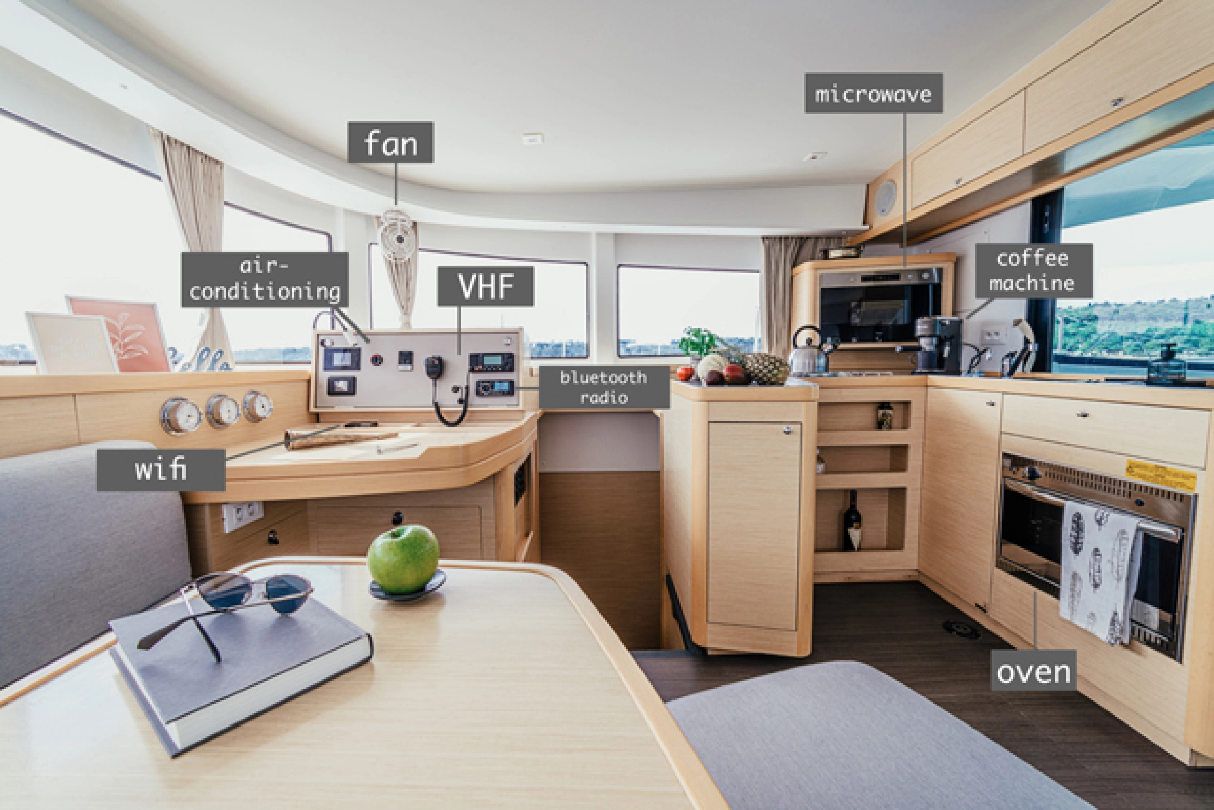 | Transit log - Final cleaning, Bed linen, 2 towels per room, Dishwashing detergent, Kitchen sponge, 2 Cleaning cloths, Toilet paper, Garbage bags, Gas tank, 2L Extra fuel for the dinghy engine | € 330 |