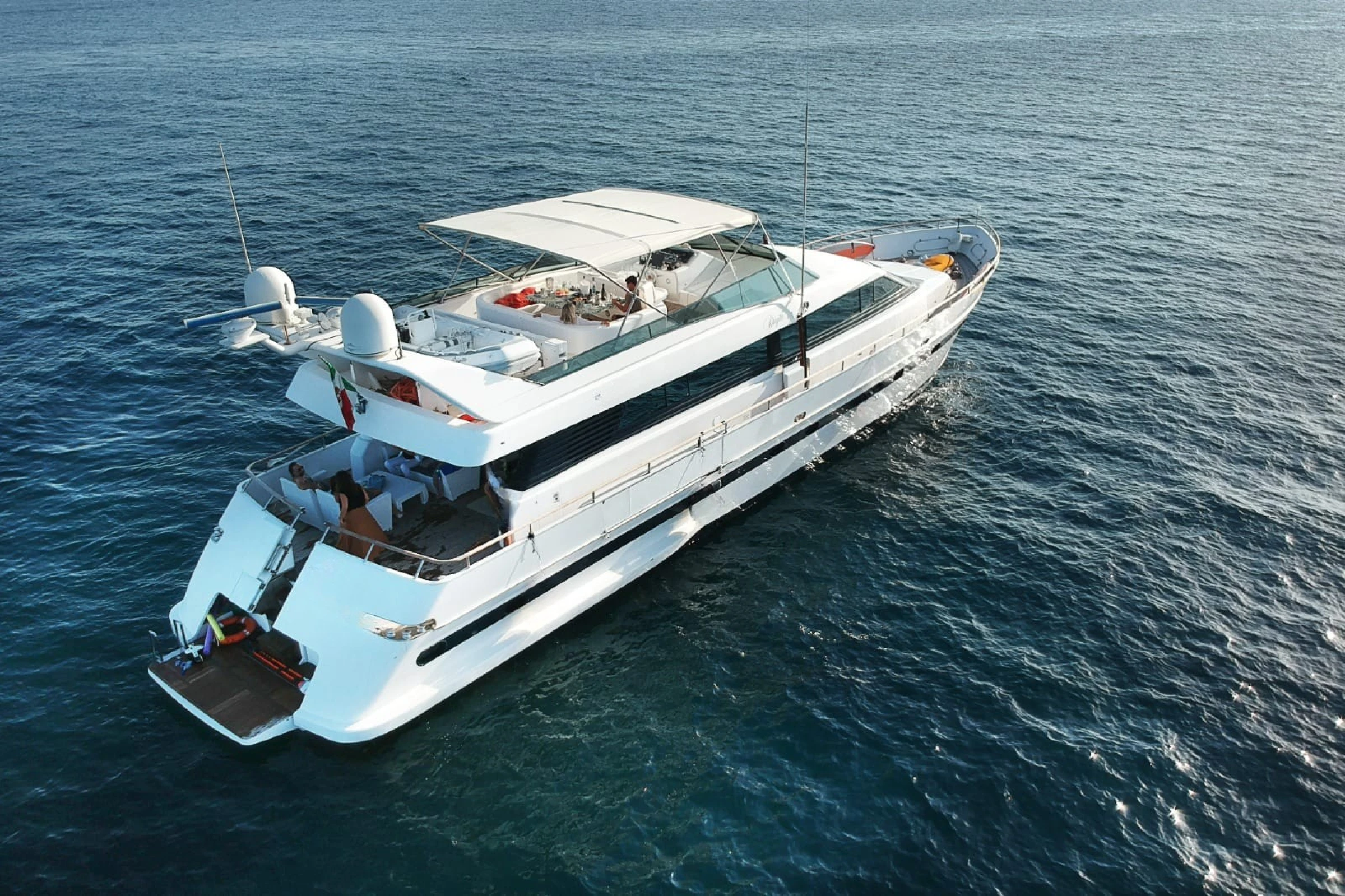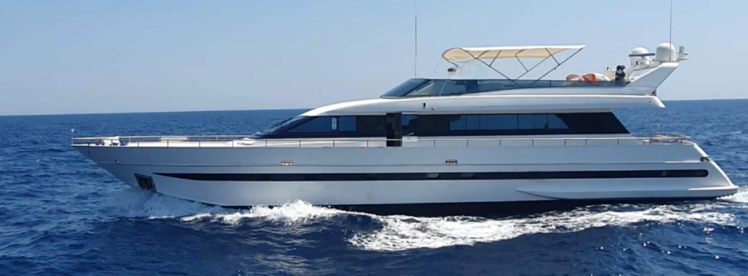 Elegante e comodo motor yacht di 25 metri (e 2.840cv) per trascorrere una meravigliosa crociera verso Grecia, Albania, Croazia, oppure anche semplicemente per passare una giornata "di lusso" in Salento, zona Gallipoli o Santa Maria di Leuca.