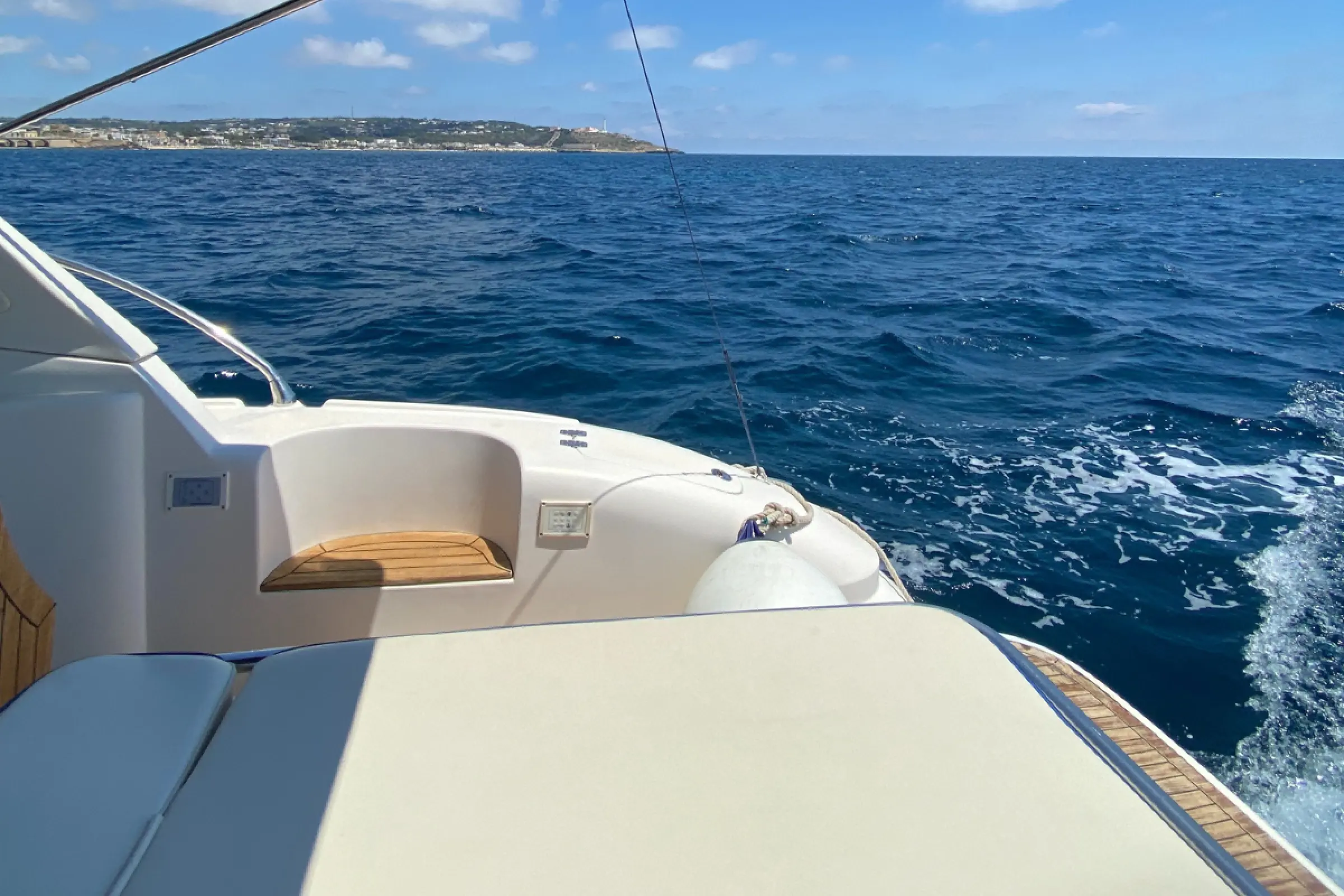 Rilassati a bordo del nostro esclusivo Mano Marine 38.50 e vivi un'esperienza unica alla scoperta delle meravigliose insenature di Leuca. Offriamo due tipi di tour, pensati per soddisfare ogni esigenza: Mezza giornata e Giornata intera Mezza giornata Un'escursione perfetta per chi ha poco tempo ma non vuole rinunciare alla bellezza dei luoghi di Leuca. Il Tour, della durata di 4 ore, vi porterà a esplorare entrambi i versanti di Leuca, con due soste per fare il bagno, una per ogni versante. A bordo, vi attenderà un aperitivo con prodotti tipici locali per un momento di relax e sapori autentici, prima di rientrare al porto. Partenze: alle 10:00 e alle 14:30 dal Porto Turistico di Leuca. Max 10 persone. Giornata Intera Per chi desidera un'esperienza più completa, il tour giornaliero, della durata di 8 ore, vi permetterà di esplorare a fondo i due versanti di Leuca, con diverse soste per il bagno e momenti di relax. A metà giornata, potrete gustare un aperitivo rinforzato con crudi di mare e prodotti tipici locali, un vero e proprio viaggio nei sapori del nostro territorio. Partenza: alle 10:00 dal Porto Turistico di Leuca. Max 10 persone- Nota: l'aperitivo rinforzato potrebbe variare in base alla disponibilità degli ingredienti.