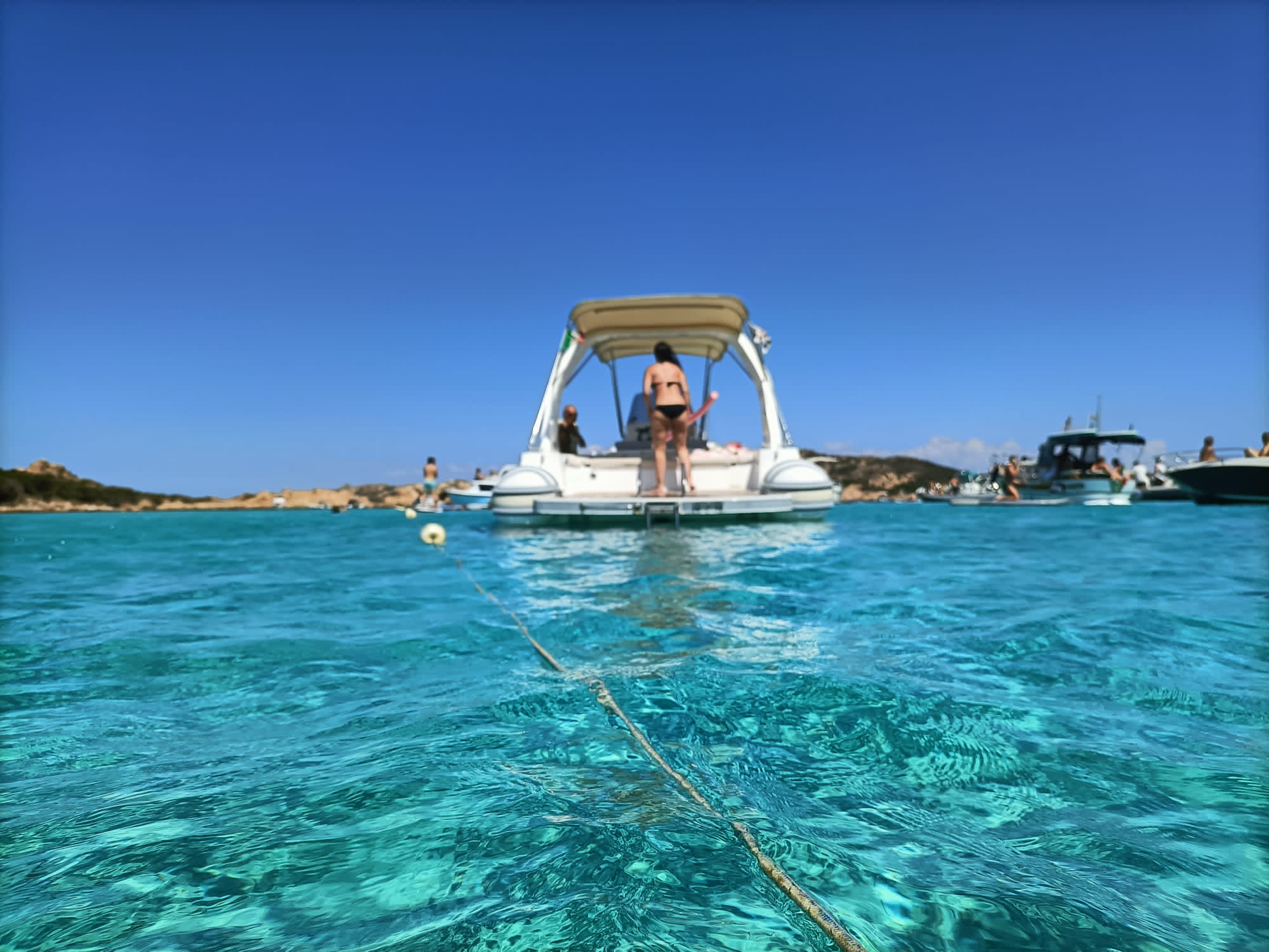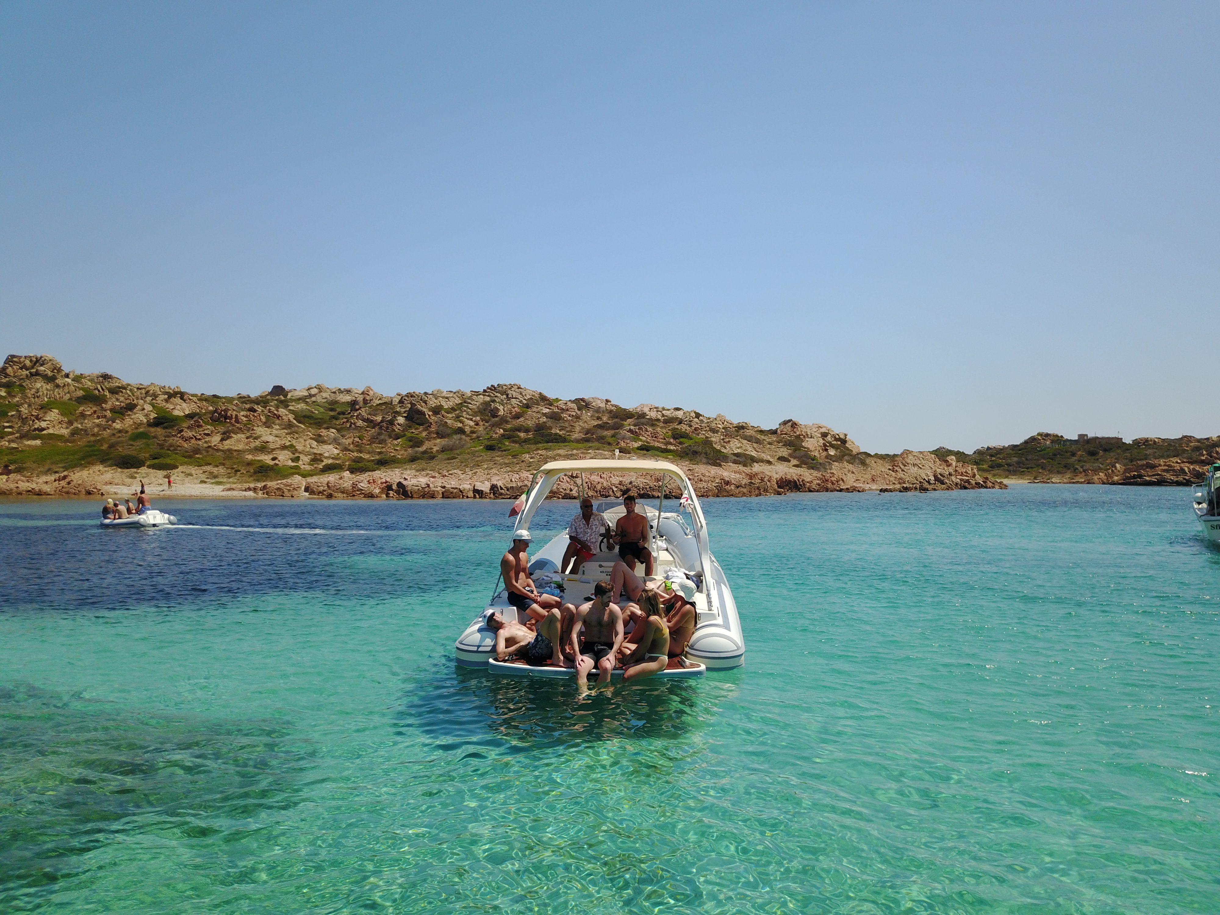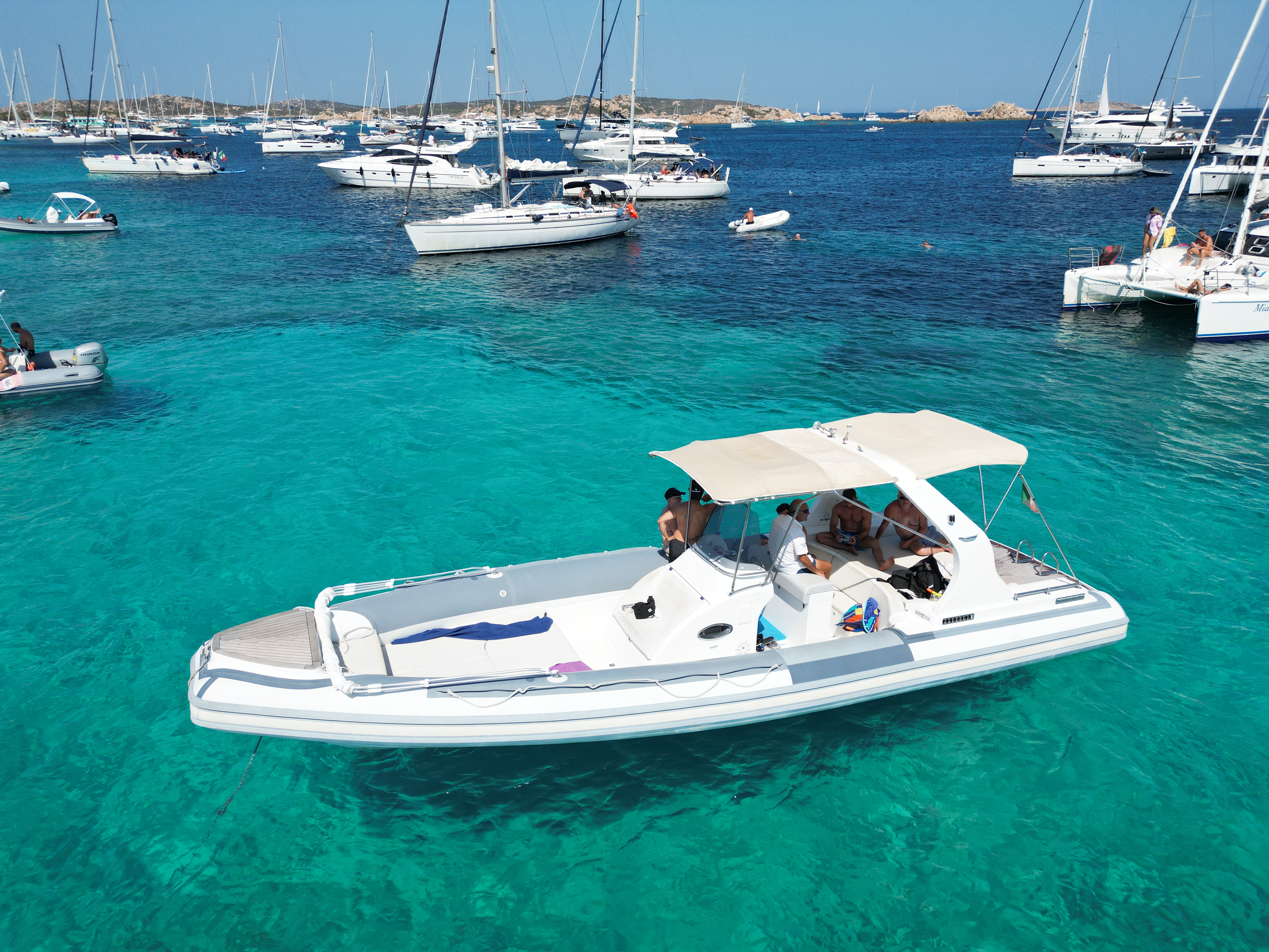 l’ideale per scoprire l’Arcipelago di La Maddalena con le sue meravigliose calette, perfetto per rendere incantevoli le tue vacanze in Sardegna! Tour delle Isole Minori Esplora le isole di Budelli, Santa Maria, Razzoli e Spargi, tra paesaggi unici di calette, spiagge e insenature naturali. Questo arcipelago è una delle destinazioni migliori per lo snorkeling, che permette di immergersi in un acquario senza pareti, con un'enorme varietà di condizioni geomarine, insenature e baie nascoste. Potrai fare piacevoli nuotate nelle acque cristalline o semplicemente rilassarti al sole a bordo. Un'Esperienza per Tutti Che tu sia in coppia, con amici o in famiglia, sei pronto a trascorrere una splendida giornata immerso in uno scenario di natura incontaminata e mare cristallino? Il Gommone Il nostro Maxi Rib di 10 metri è uno dei modi più entusiasmanti per scoprire le bellezze delle nostre coste e del nostro mare, offrendo un comfort ineguagliabile. Caratterizzato da eleganza stilistica, presenta un grande divano semicircolare, due ampie aree prendisole a prua e poppa con tendalino parasole, una plancetta con comoda scaletta per risalire dopo il bagno e una doccetta con acqua dolce. È motorizzato con un motore da 270 cavalli, che consente una velocità di crociera sicura di 18/20 nodi. Organizzazione del Tour La durata e le soste verranno concordate con lo skipper in base alle esigenze degli ospiti, considerando l'affollamento di barche e la direzione del vento per garantire il massimo comfort. Solitamente, il tour prevede 4-5 soste. Dettagli del Tour • Partenza: Porto di Palau, Pontile A alle 09:30 • Ritorno: 16:30 • Durata: 7 ore • Il costo del tour comprende: carburante, skipper, tassa parco, attrezzatura snorkeling e un aperitivo sardo con formaggio pecorino, salsiccia, pane carasau guttiau, vino Vermentino, caffè con dolcino e liquore di mirto sardo. Vieni a vivere un’esperienza indimenticabile alla scoperta di uno dei luoghi più straordinari del Mediterraneo!